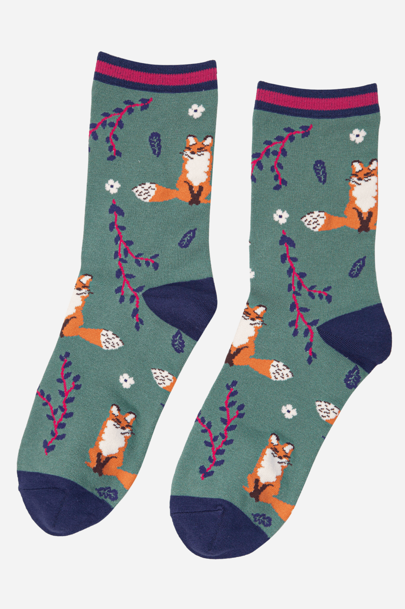 Women's Fox and Leaf Print Bamboo Socks. Socks are onesized (3 - 7 U.K.)