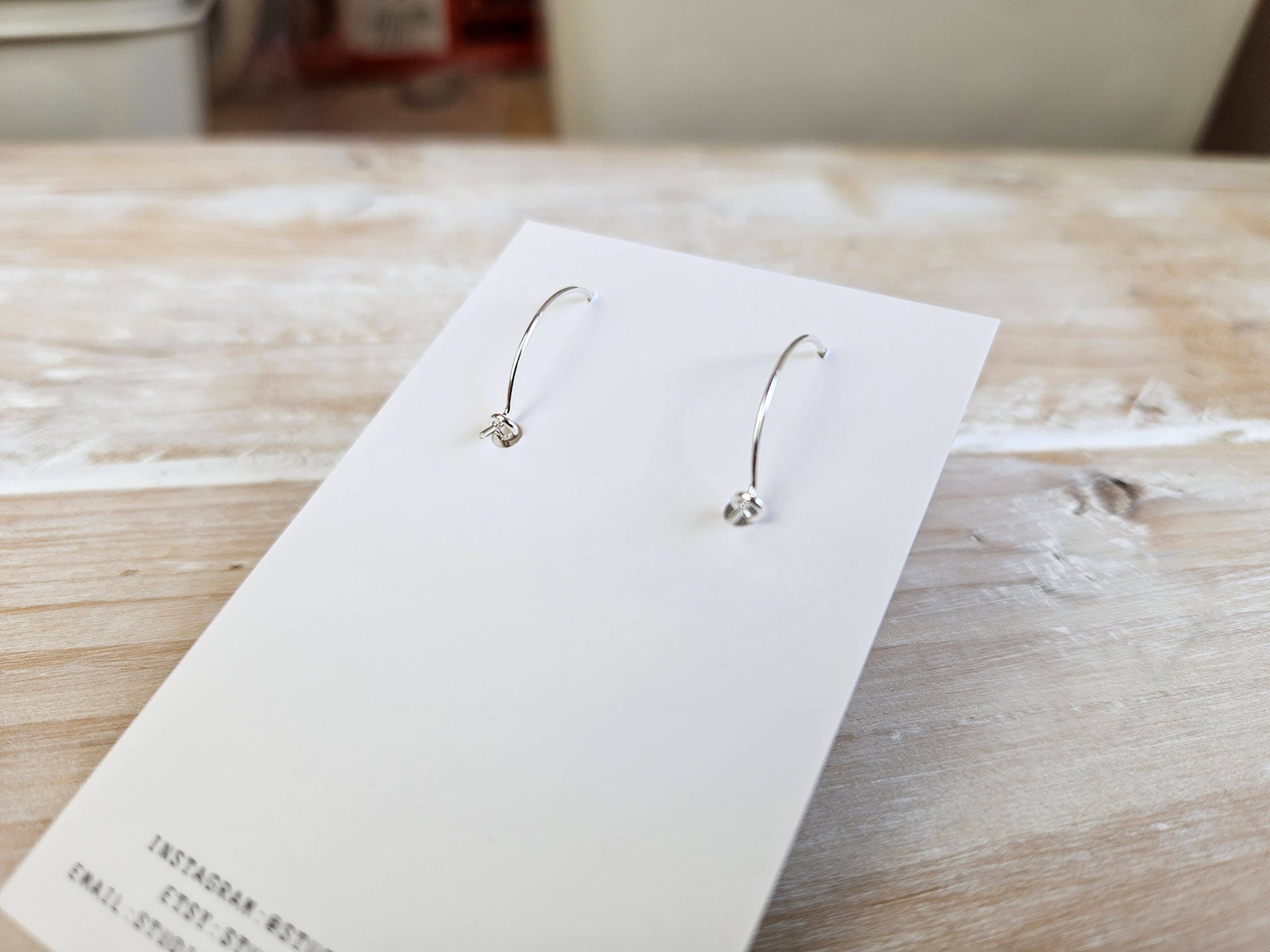 Pair of semi-circular porcelain clay drop earrings glazed in a range of decorative pastel stoneware glazes. The drops are approximately 18mm in length and 23mm in width and have silver-plated hoops and come presented on a coloured matte card ready to display.