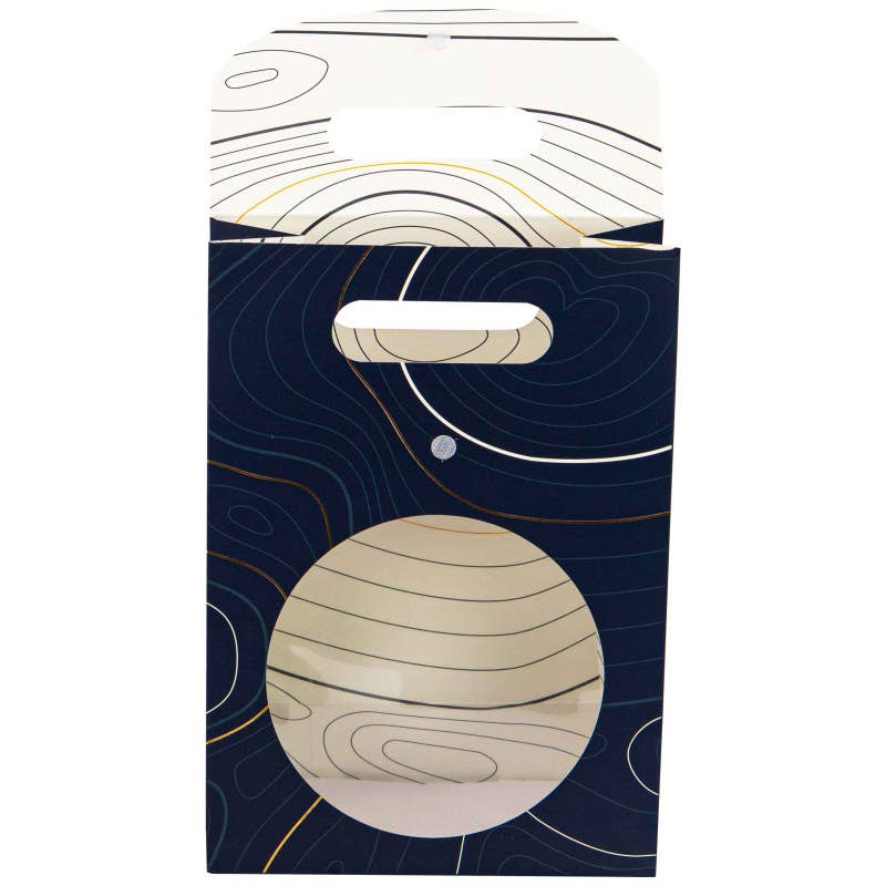 At any time of the year, offer your customers to pack your products in this rectangular cardboard gift bag from the Abysse collection. Equipped with a flap with scratch, it allows a safe and effective and secure closure for all the products inserted. In addition, a transparent round window will allow direct visibility of your products in order to enhance them. Its classy and sophisticated design makes this pouch unique and high-end.